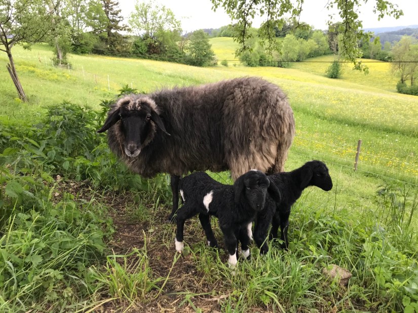 Ein paar Impressionen 17. Juli 2022 Hirmhof Landwirtschaft Die Pferde haben wir schweren herzens verkauftDie Blätter vom Ahornbaum gehen bald aufRosa und Sieglinde geniessen ihren AuslaufJedes unserer Mutterschafe hat Zwillinge bekommen!